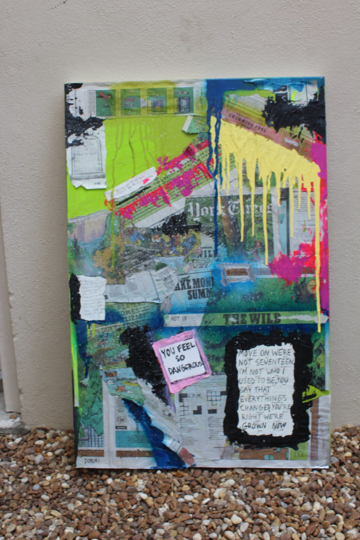 Mourning Paper is my exploration into all things adult. Throughout my twenty first year, I spent time creating mixed media pieces that forced me to let go of my childlike illusion of the world and face my trauma, an ever changing and frightening political climate, mass tragedy, and poverty.